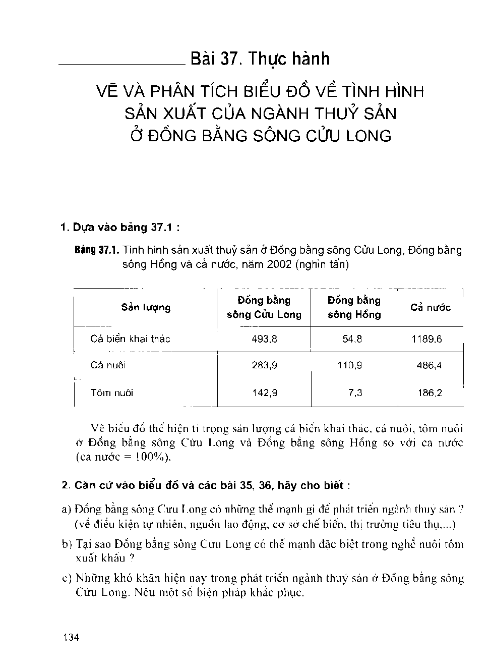 Bài 37: Thực hành: Vẽ và phân tích biểu đồ về tình hình sản xuất của ngành thủy sản ở Đồng bằng sông Cửu Long