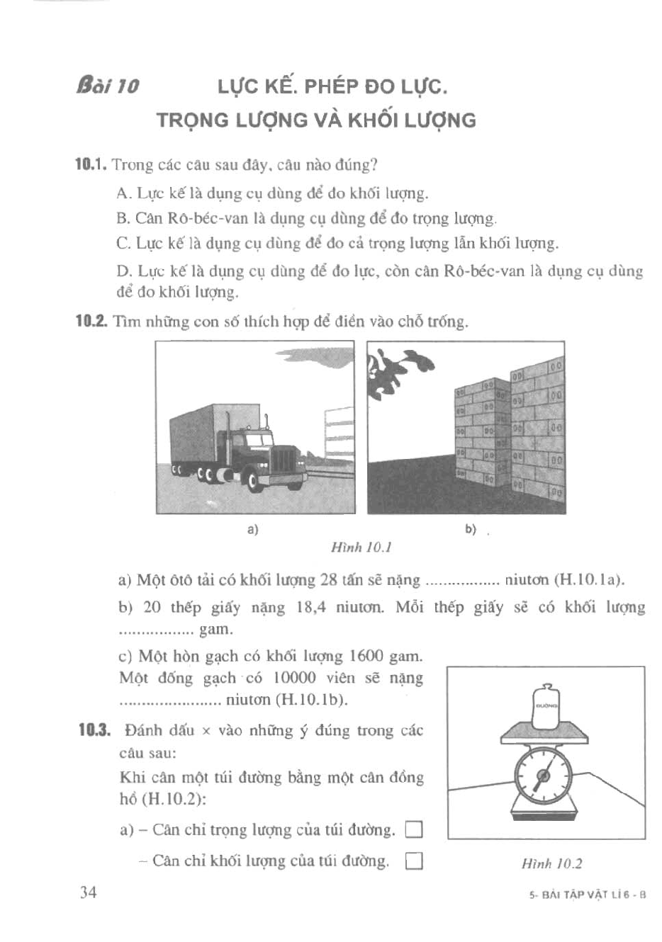 Bài 10. Lực kế – Phép đo lực – Trọng lượng và khối lượng