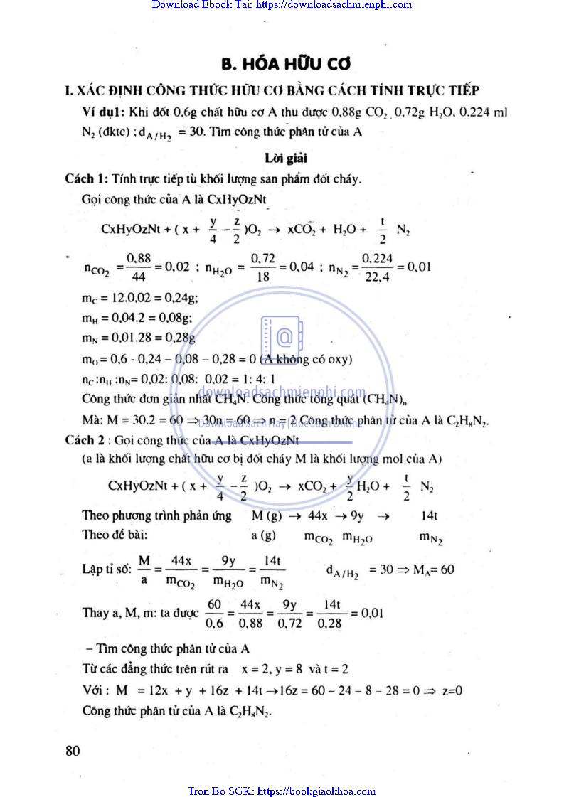 I. XÁC ĐỊNH CÔNG THỨC HỮU CO BẰNG CÁCH TÍNH TRỰC TIẾP