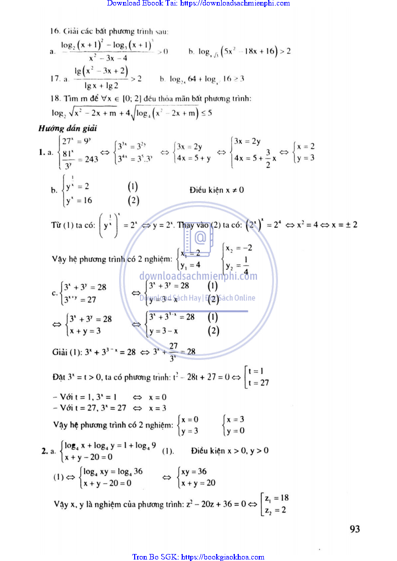 Giải Bài Tập Giải Tích Lớp 12 Nâng Cao – Nguyễn Văn Lộc