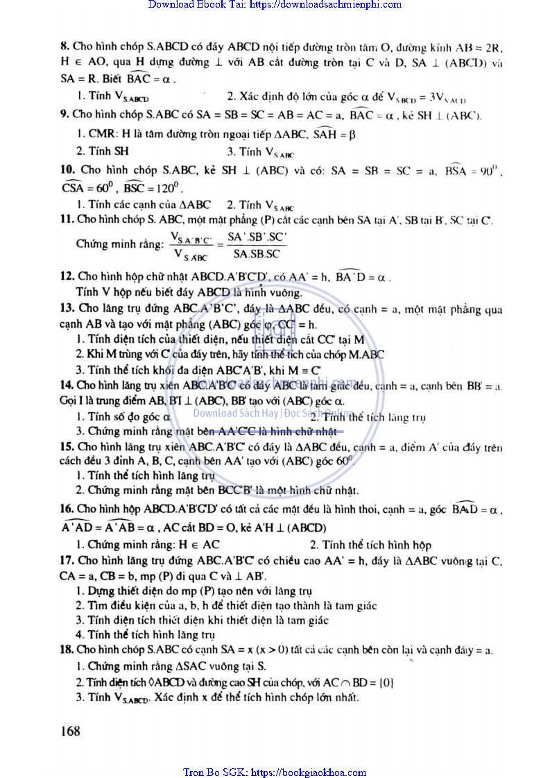 Giải Bài Tập Hình Học Lớp 12 Chương Trình Chuẩn – Nguyễn Văn Lộc