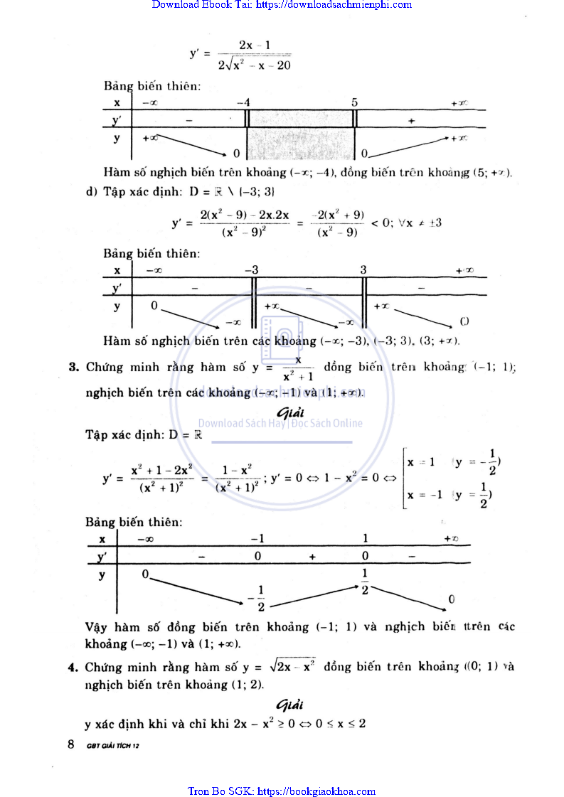 Giải Bài Tập Giải Tích Lớp 12 Chương Trình Chuẩn – Nguyễn Văn Lộc