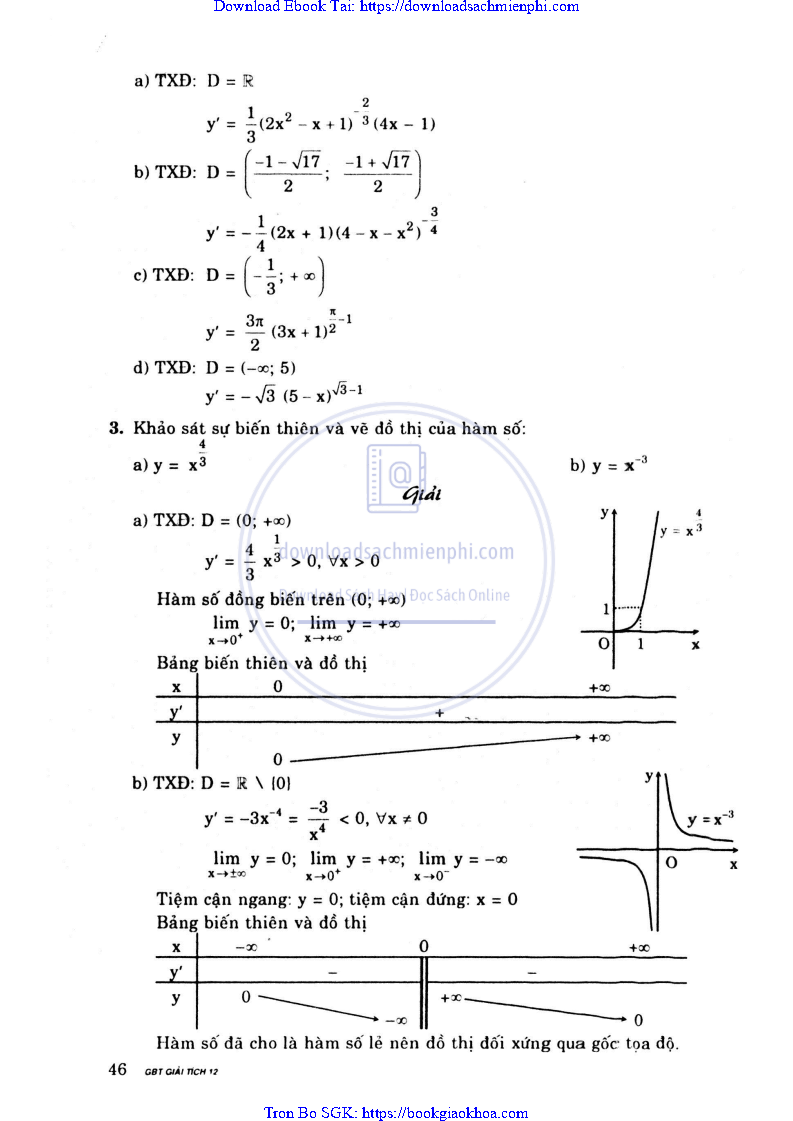 Giải Bài Tập Giải Tích Lớp 12 Chương Trình Chuẩn – Nguyễn Văn Lộc