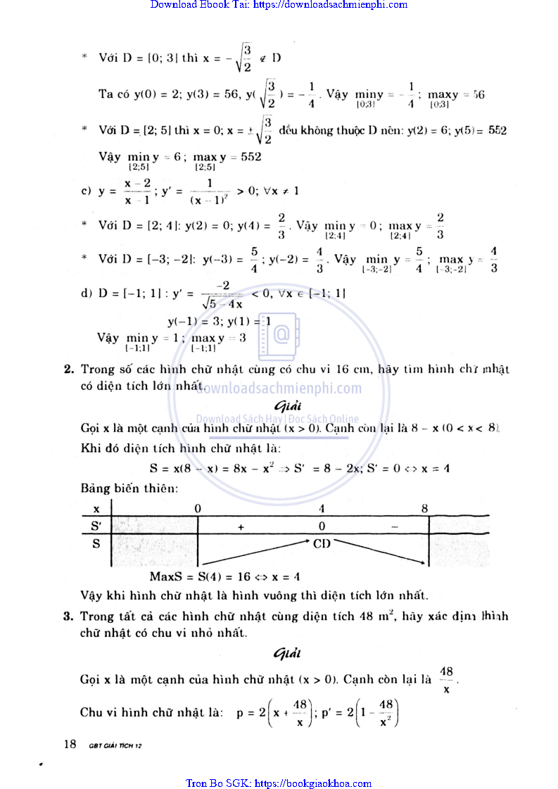 Giải Bài Tập Giải Tích 12 – Nguyễn Vũ Thanh