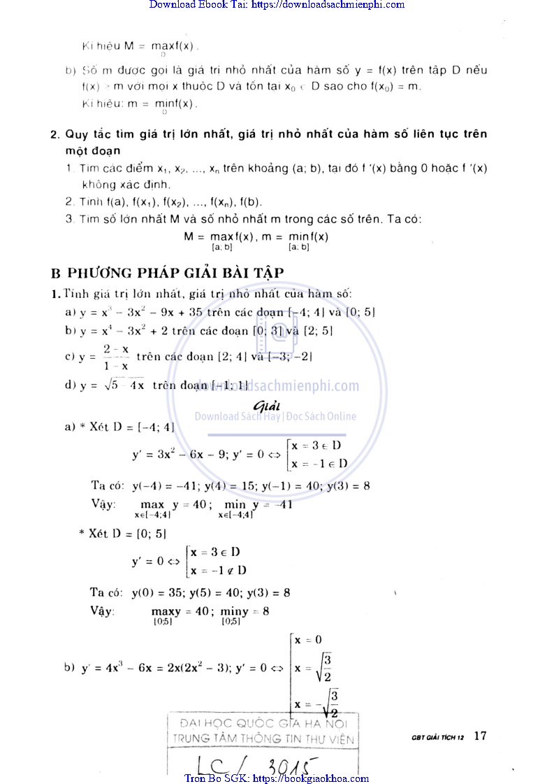 Giải Bài Tập Giải Tích Lớp 12 Chương Trình Chuẩn – Nguyễn Văn Lộc
