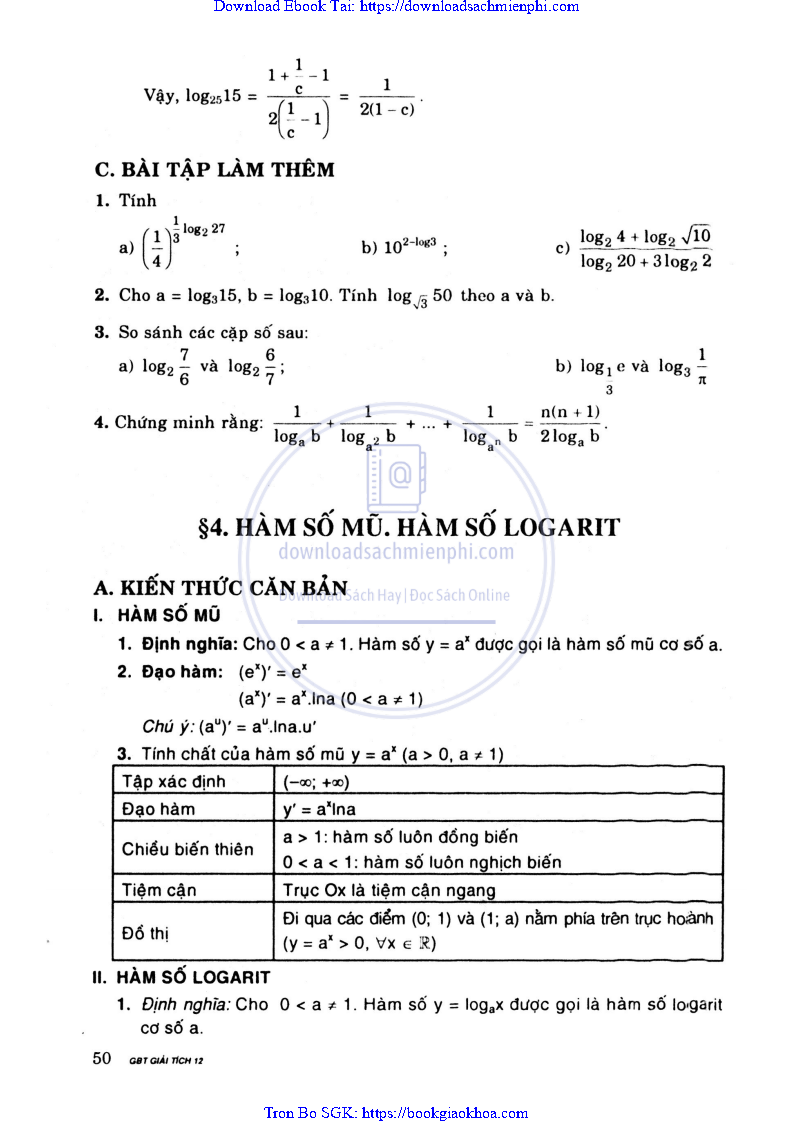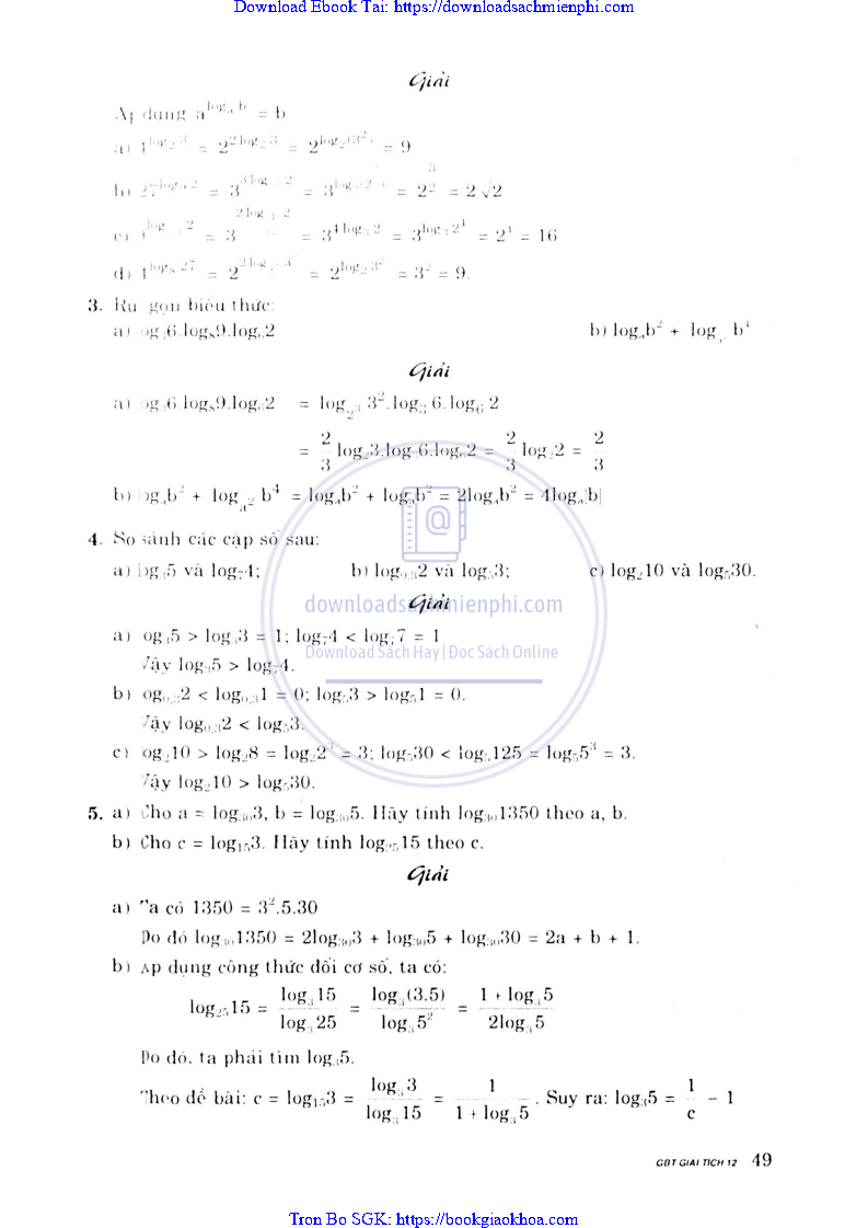 Giải Bài Tập Giải Tích Lớp 12 Nâng Cao – Nguyễn Văn Lộc