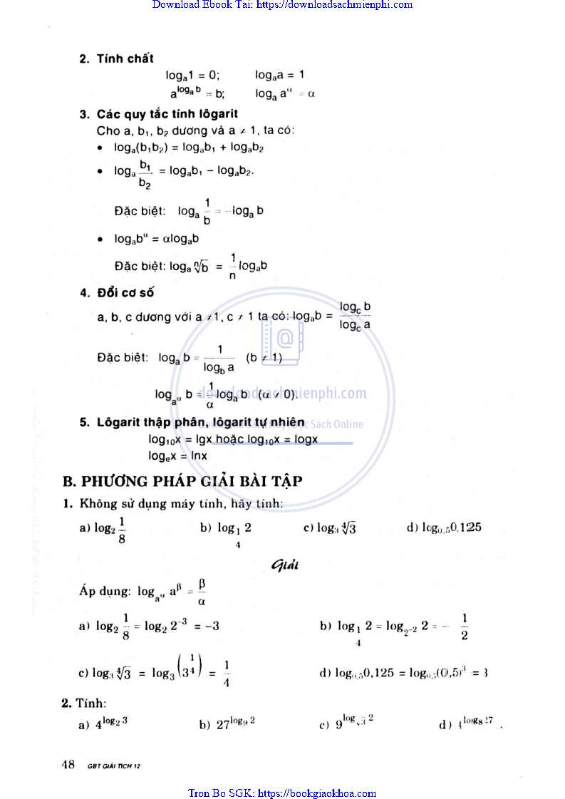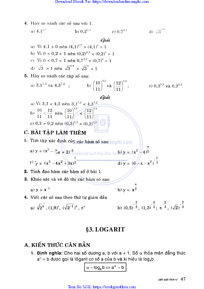 Giải Bài Tập Giải Tích Lớp 12 Chương Trình Chuẩn – Nguyễn Văn Lộc