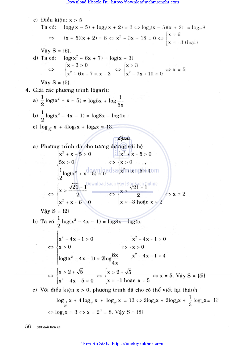 Giải Bài Tập Giải Tích Lớp 12 Chương Trình Chuẩn – Nguyễn Văn Lộc