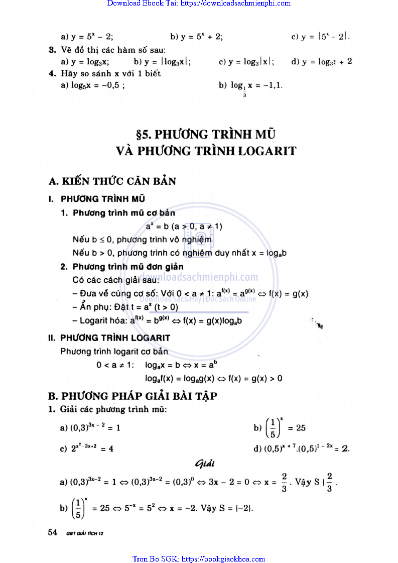 BÀI 5. PHƯƠNG TRÌNH MŨ VÀ PHƯƠNG TRÌNH LOGARIT