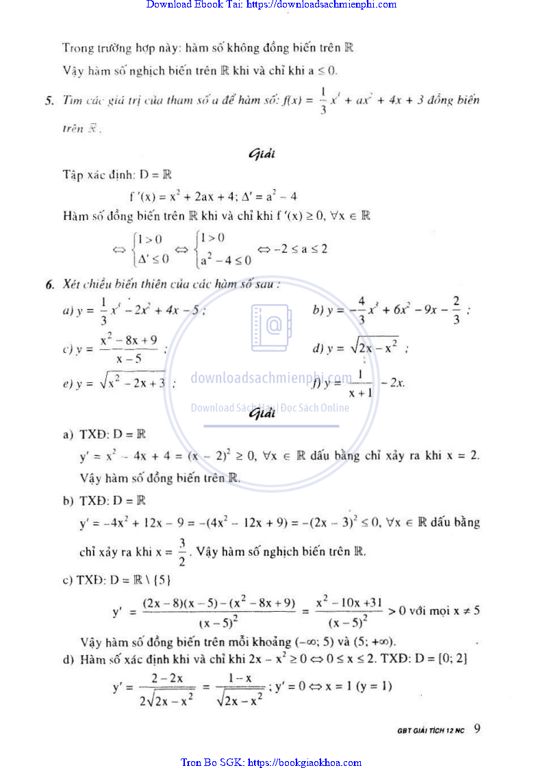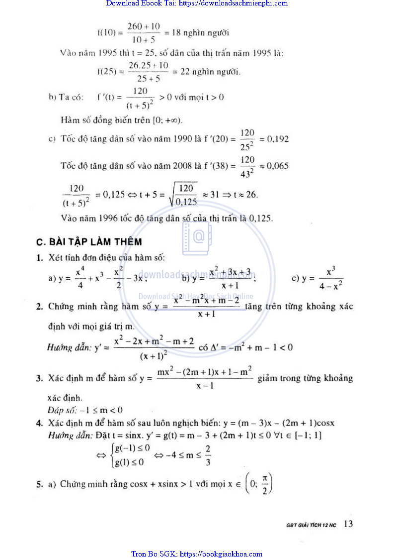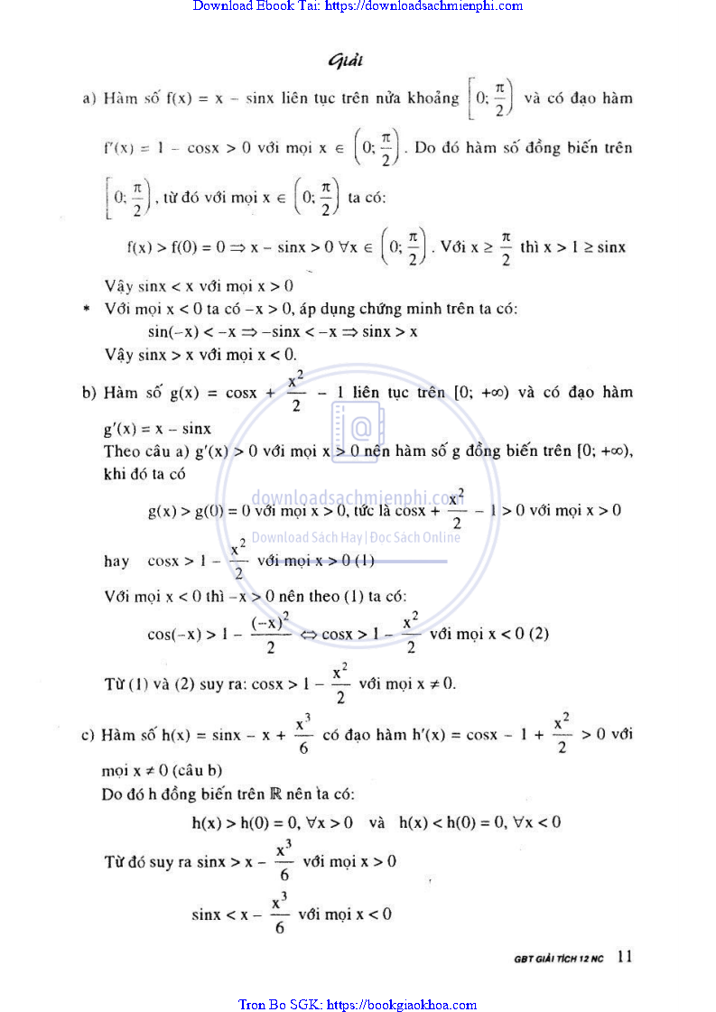 Giải Bài Tập Giải Tích Lớp 12 Chương Trình Chuẩn – Nguyễn Văn Lộc