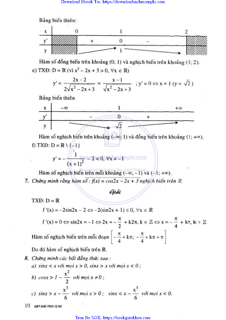 Giải Bài Tập Giải Tích Lớp 12 Nâng Cao – Nguyễn Văn Lộc