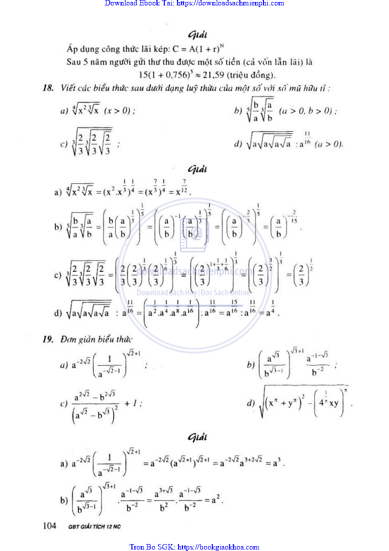 Giải Bài Tập Giải Tích Lớp 12 Chương Trình Chuẩn – Nguyễn Văn Lộc