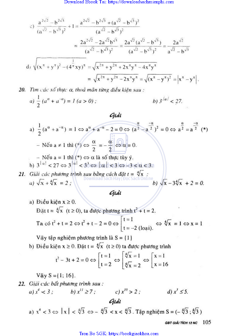 Giải Bài Tập Giải Tích Lớp 12 Nâng Cao – Nguyễn Văn Lộc