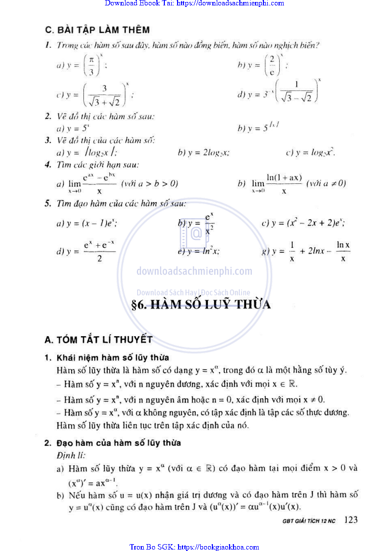 Giải Bài Tập Giải Tích Lớp 12 Nâng Cao – Nguyễn Văn Lộc