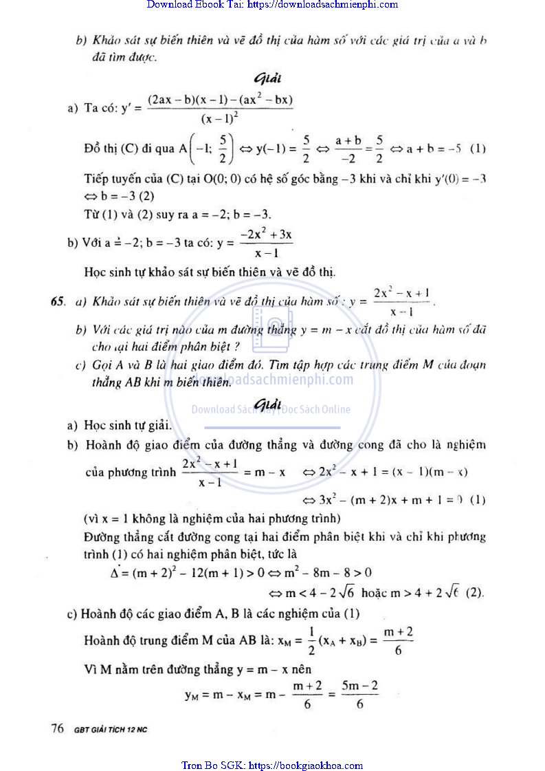 Giải Bài Tập Giải Tích Lớp 12 Nâng Cao – Nguyễn Văn Lộc