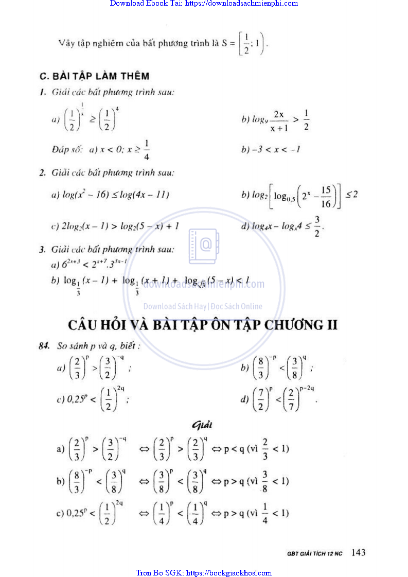 Giải Bài Tập Giải Tích Lớp 12 Chương Trình Chuẩn – Nguyễn Văn Lộc