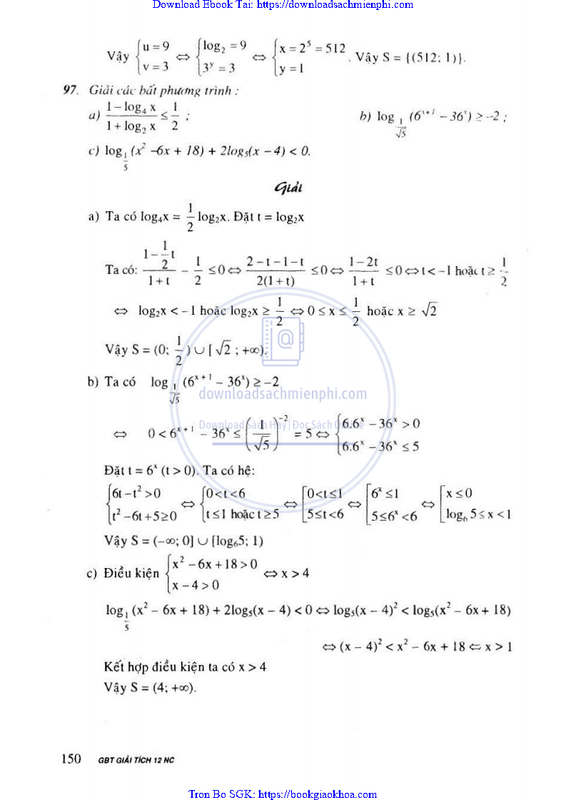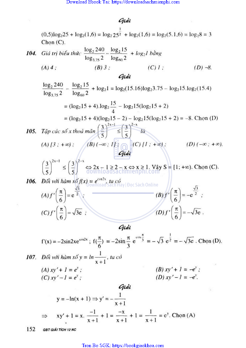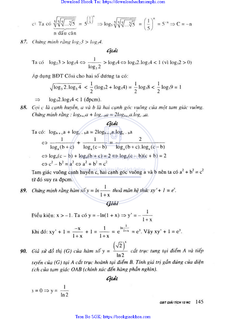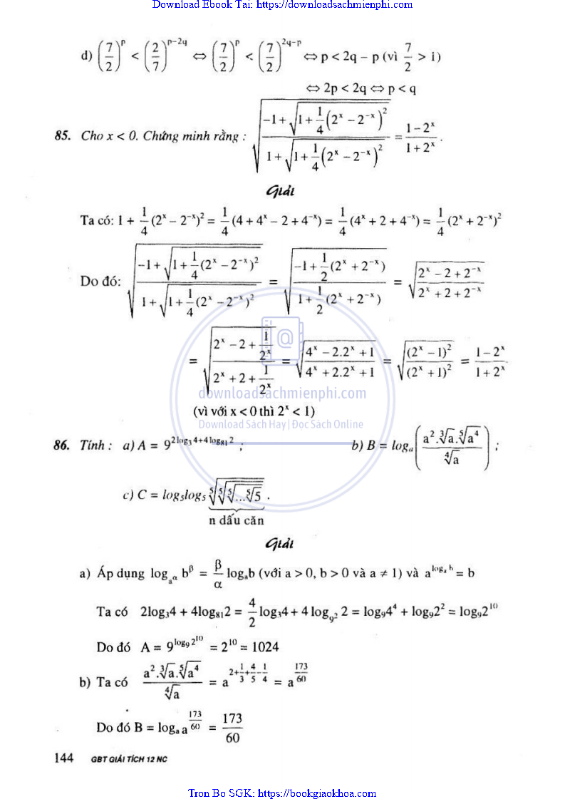 Giải Bài Tập Giải Tích Lớp 12 Nâng Cao – Nguyễn Văn Lộc