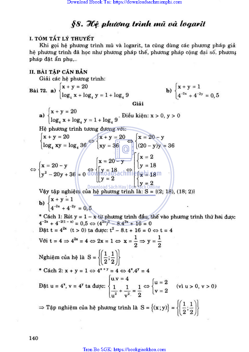- BÀI 8. HỆ PHƯƠNG TRÌNH VÀ LÔGARIT