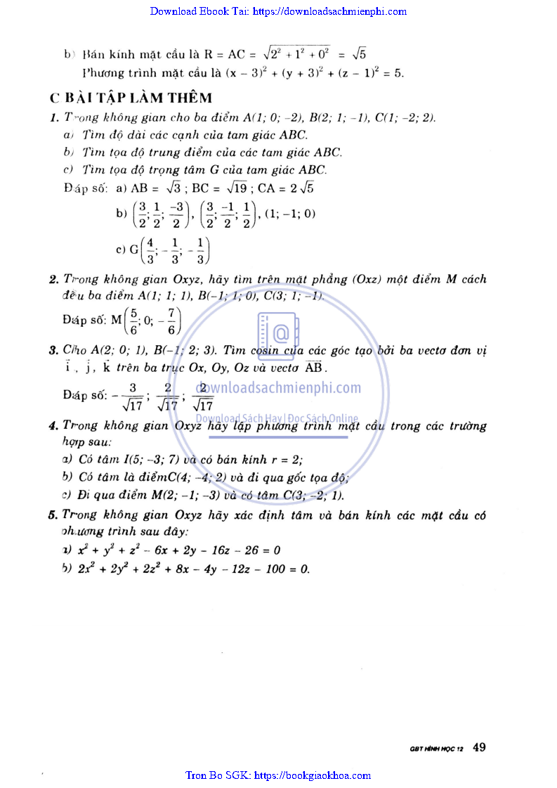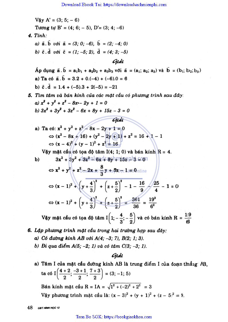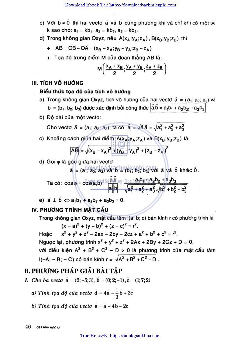 Giải Bài Tập Hình Học Lớp 12 Nâng Cao – Nguyễn Văn Lộc
