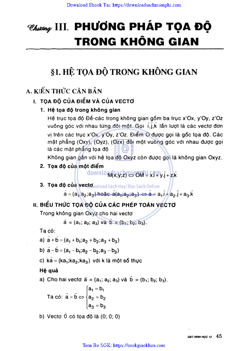 BÀI 1. HỆ TỌA ĐỘ TRONG KHÔNG GIAN