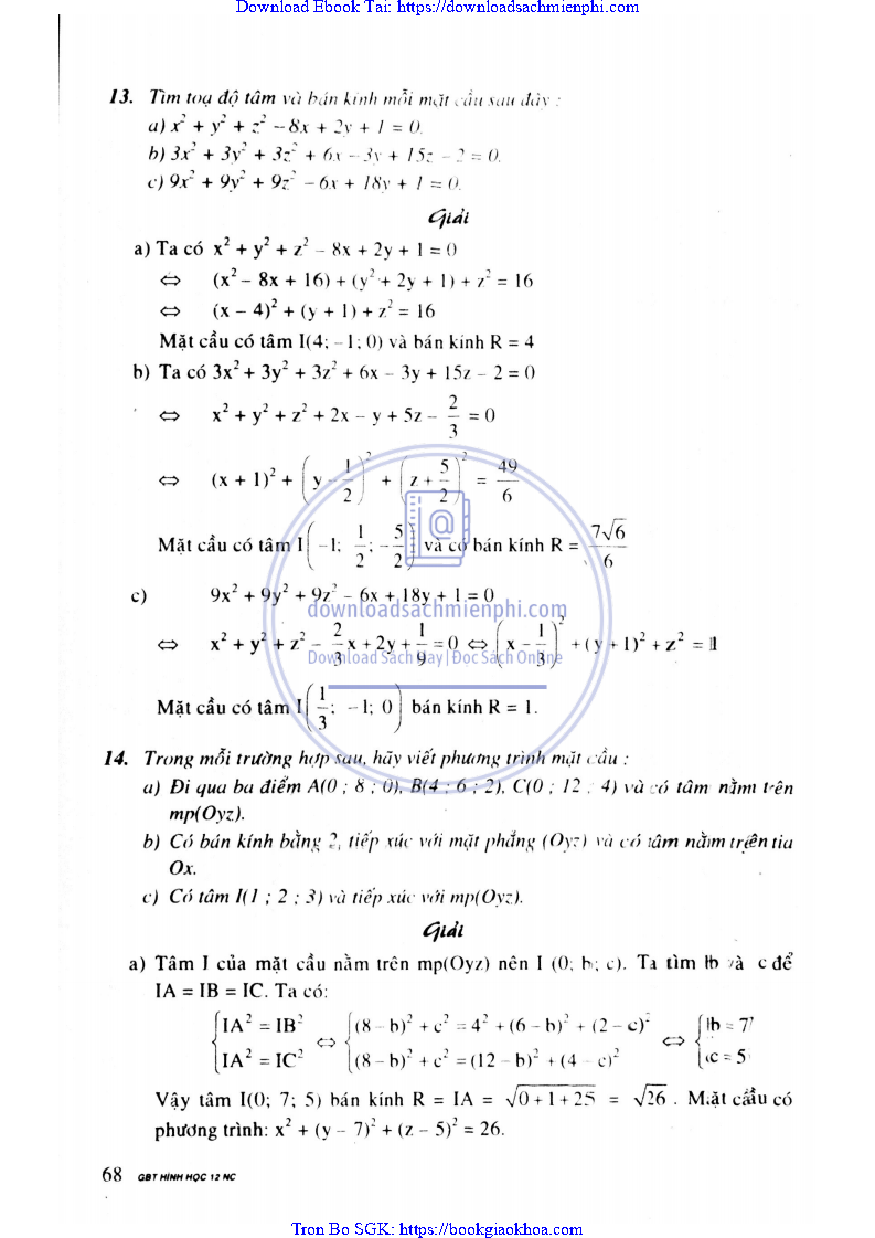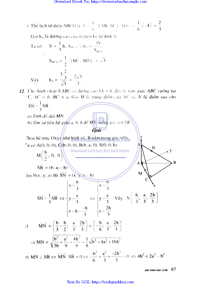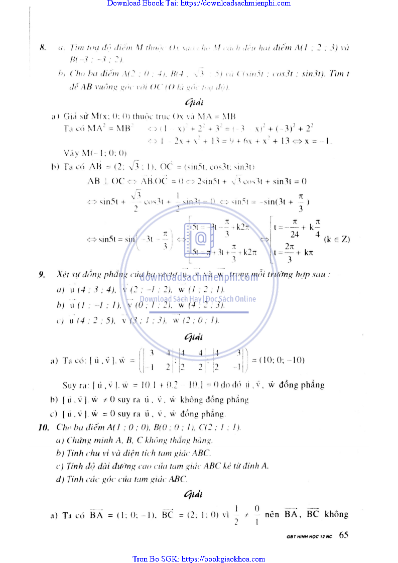Giải Bài Tập Hình Học Lớp 12 Nâng Cao – Nguyễn Văn Lộc