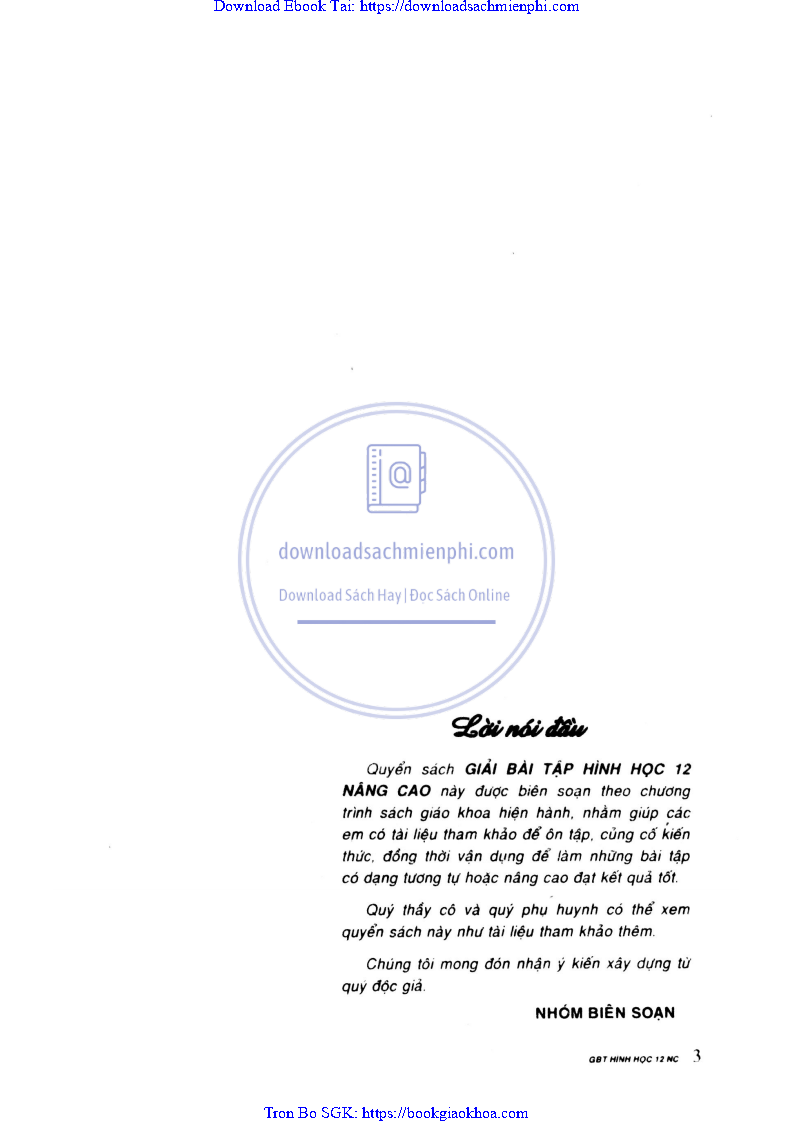 Giải Bài Tập Hình Học Lớp 12 Nâng Cao – Nguyễn Văn Lộc