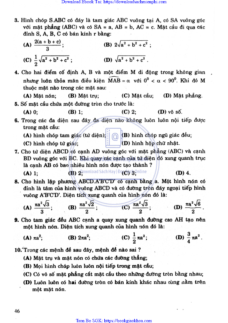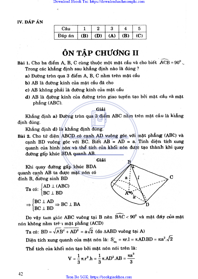 Giải Bài Tập Hình Học Lớp 12 Nâng Cao – Nguyễn Văn Lộc