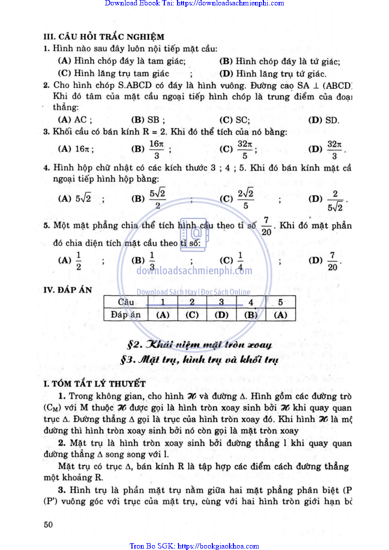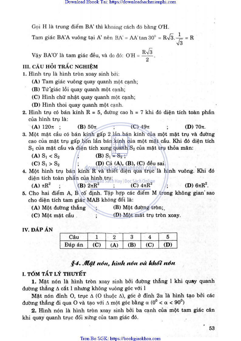 BÀI 3. MẶT TRỤ, HÌNH TRỤ VÀ KHỐI TRỤ