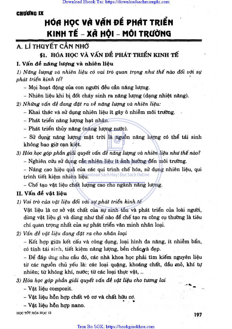 CHƯƠNG IX. HÓA HỌC VÀ VẤN ĐỀ PHÁT TRIỂN KINH TẾ – XÃ HỘI – MÔI TRƯỜNG