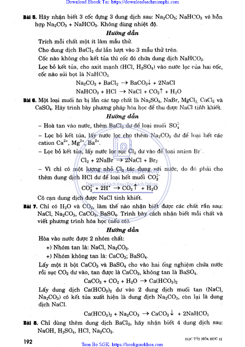 CHƯƠNG VIII. PHÂN BIỆT MỘT SỐ CHẤT VÔ CƠ