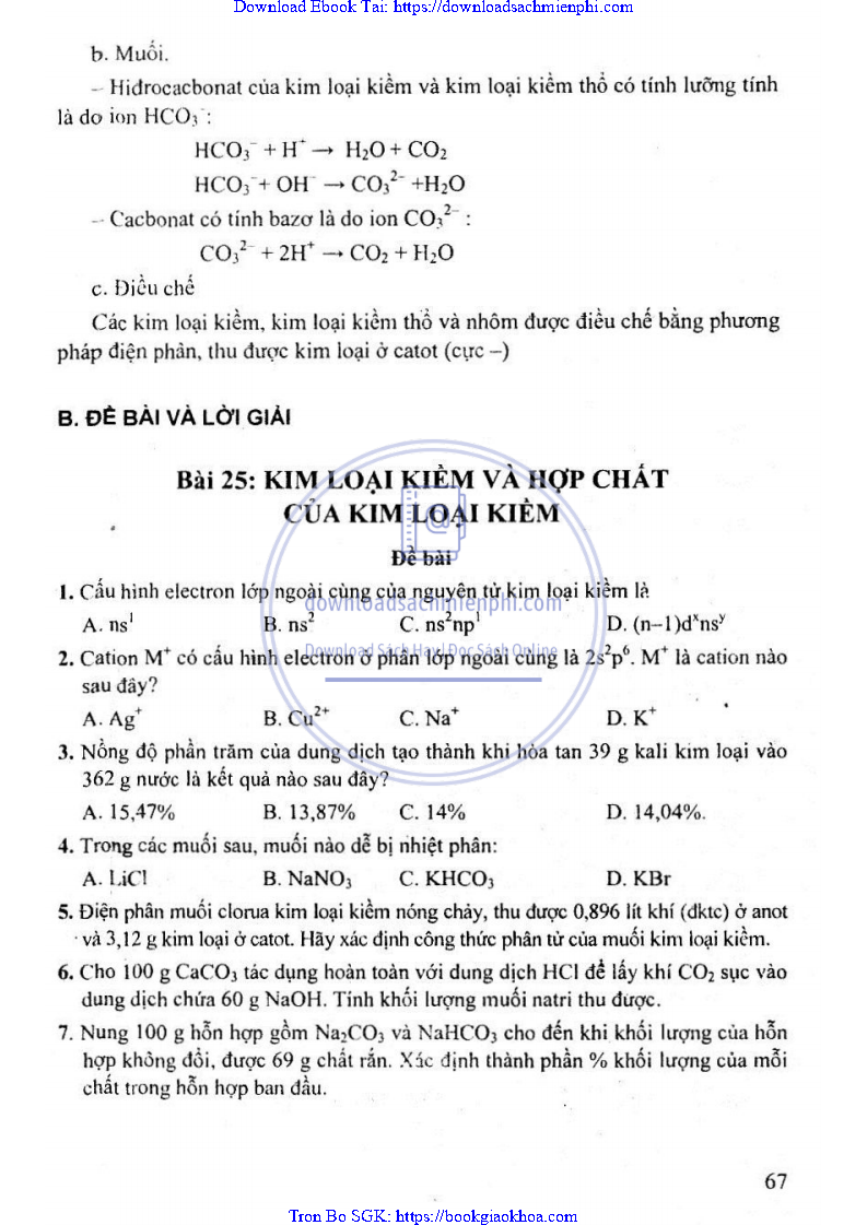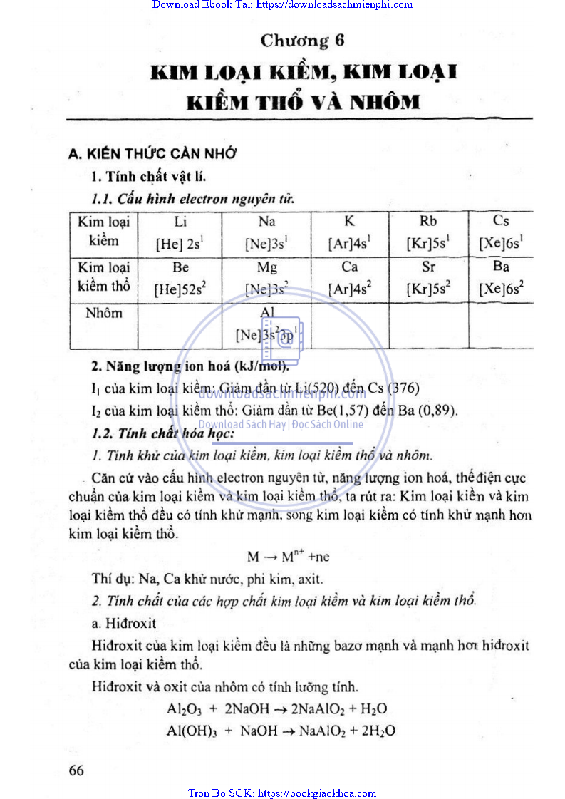 CHƯƠNG VI. KIM LOẠI KIỀM – KIỀM THỔ – NHÔM