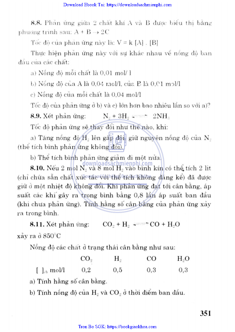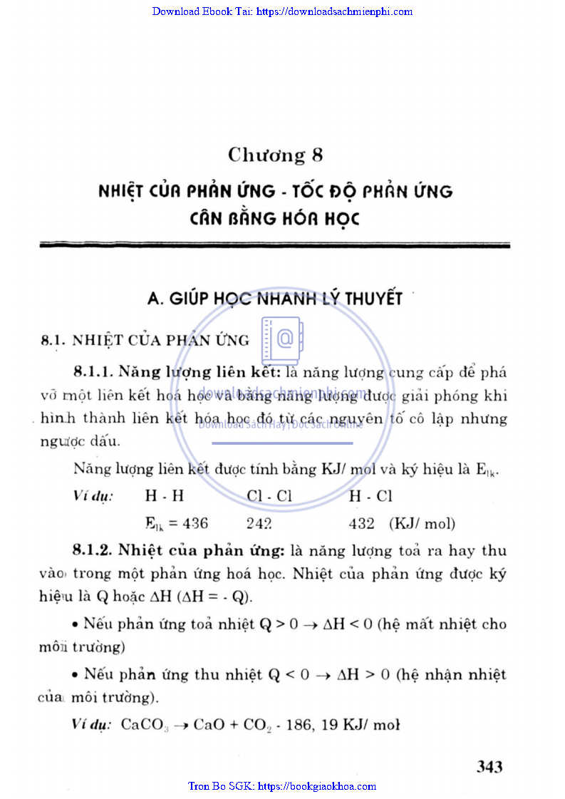 CHƯƠNG 8. NHIỆT CỦA PHẢN ỨNG – TỐC ĐỘ PHẢN ỨNG CÂN BẰNG HÓA HỌC