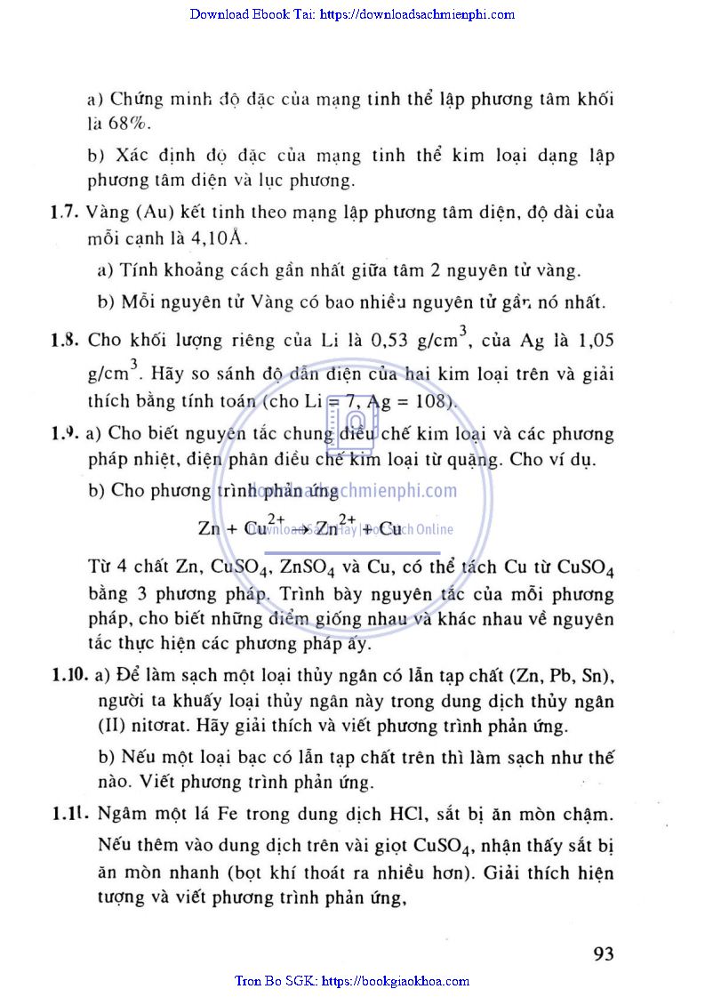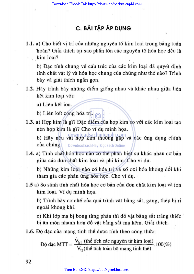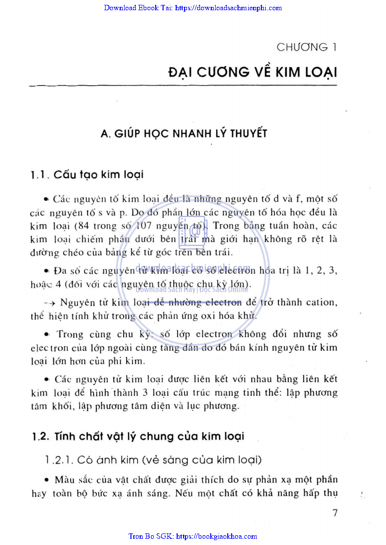 CHƯƠNG 1: ĐẠI CƯƠNG VỀ KIM LOẠI