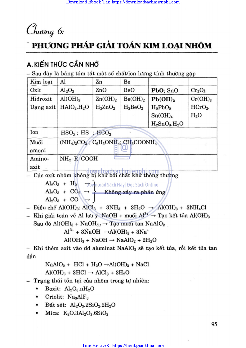 - CHƯƠNG VI: PHƯƠNG PHÁP GIẢI TOÁN KIM LOẠI NHÔM