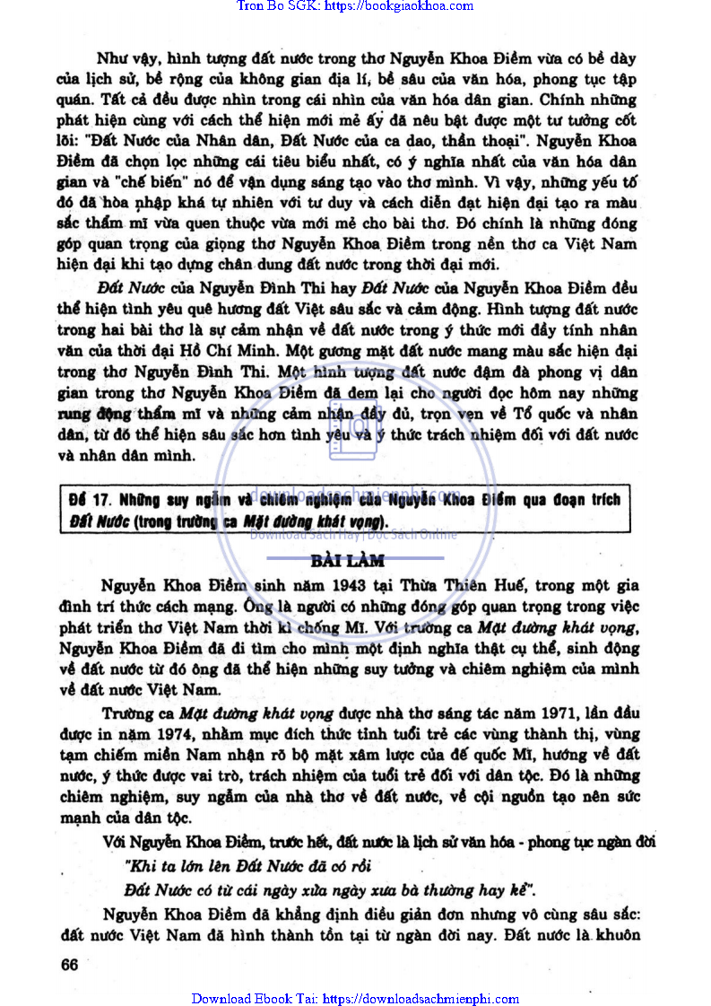 ĐỀ 16: HÌNH TƯỢNG ĐẤT NƯỚC QUA BÀI THƠ ĐẤT NƯỚC CỦA NGUYỄN ĐÌNH THI VÀ CHƯƠNG ĐẤT NƯỚC (TRÍCH TRƯỜNG CA MẶT ĐƯỜNG KHÁI VỌNG) CỦA NGUYỄN KHOA ĐIỀM