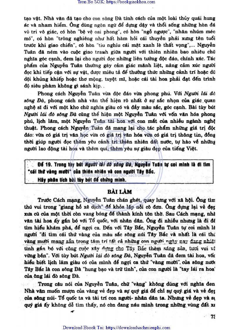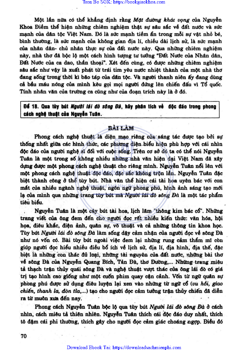 ĐỀ 18: QUA TÙY BÚT NGƯỜI LÁI ĐÒ SÔNG ĐÀ, HÃY PHÂN TÍCH VẺ ĐỘC ĐÁO TRONG PHONG CÁCH NGHỆ THUẬT CỦA NGUYỄN TUÂN
