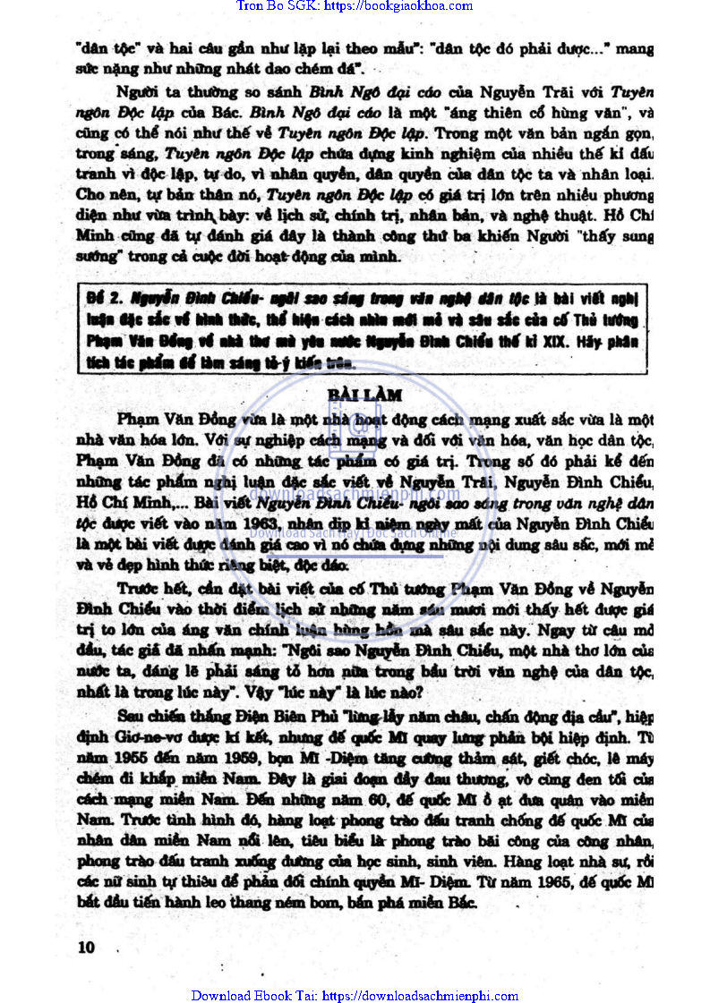 ĐỀ 2: NGUYỄN ĐÌNH CHIỂU – NGÔI SAO SÁNG TRONG VĂN NGHỆ DÂN TỘC LÀ BÀI VIẾT NGHỊ LUẬN ĐẶC SẮC VỀ HÌNH THỨC, THỂ HIỆN CÁCH NHÌN MỚI MẺ VÀ SÂU SẮC CỦA CỐ THỦ TƯỞNG PHẠM VĂN ĐỒNG VỀ NHÀ THƠ MÙ YÊU NƯỚC NGUYỄN ĐÌNH CHIỂU THẾ KỶ XIX. HÃY PHÂN TÍCH TÁC PHẨM ĐỂ LÀM SÁNG TỎ Ý KIẾN TRÊN