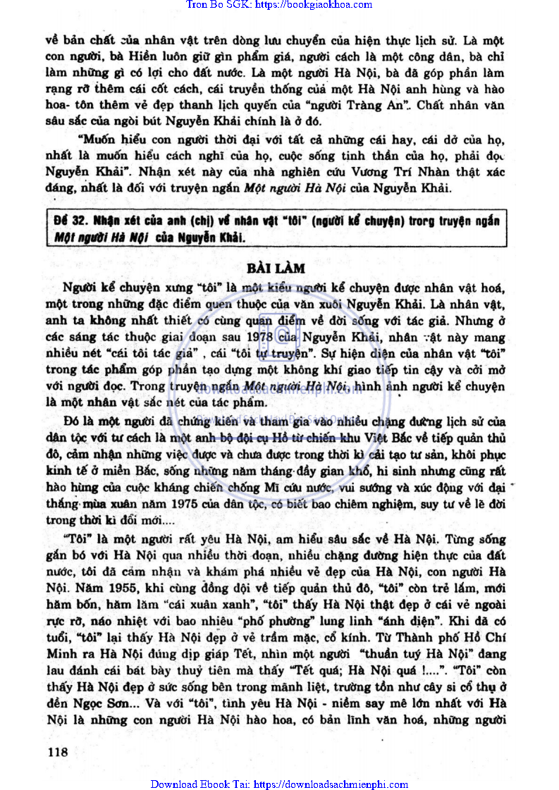 ĐỀ 32: NHẬN XÉT CỦA ANH (CHỊ) VỀ NHÂN VẬT “TÔI” (NGƯỜI KỂ CHUYỆN) TRONG TRUYỆN NGẮN MỘT NGƯỜI HÀ NỘI CỦA NGUYỄN KHẢI.