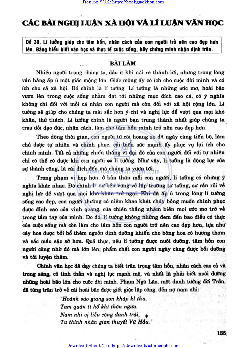 ĐỀ 39: LÍ TƯỞNG GIÚP CHO TÂM HỒN, NHÂN CÁCH CỦA CON NGƯỜI TRỞ NÊN CAO ĐẸP HƠN LÊN. BẰNG HIỂU BIẾT VĂN HỌC VÀ THỰC TẾ CUỘC SỐNG, HÃY CHỨNG MINH NHẬN ĐỊNH TRÊN.