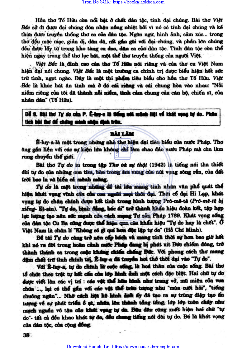 ĐỀ 9: BÀI THƠ TỰ DO CỦA P. Ê-HUY-A LÀ TIẾNG NÓI MÃNH LIỆT VỀ KHÁT VỌNG TỰ DO. PHÂN TÍCH BÀI THƠ ĐỂ CHỨNG MINH NHẬN ĐỊNH TRÊN.