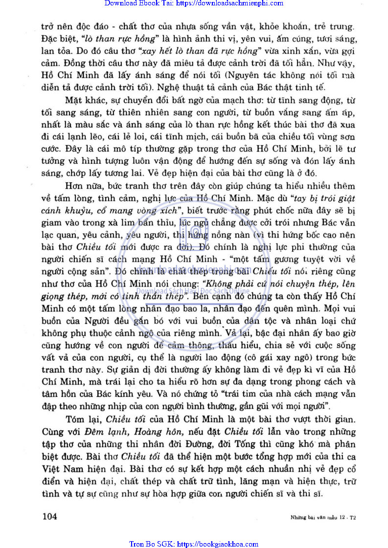 BÌNH GIẢNG BÀI THƠ CHIỀU TỐI (MỘ) TRONG NHẬT KÍ TRONG TÙ CỦA CHỦ TỊCH HỒ CHÍ MINH ĐỂ LÀM RÕ CHẤT THÉP, VÈ ĐẸP CỔ ĐIỂN, VẺ ĐẸP HIỆN ĐẠI, TẤM LÒNG NHÂN ĐẠO BAO LA CỦA NGƯỜI