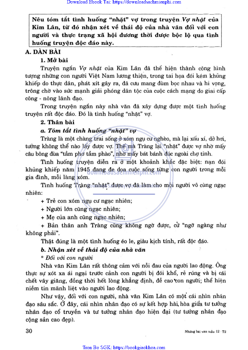 NÊU TÓM TẮT TÌNH HUỐNG “NHẶT” VỢ TRONG TRUYỆN VỢ NHẶT CỦA KIM LÂN, TỪ ĐÓ NHẬN XÉT VỀ THÁI ĐỘ CỦA NHÀ VĂN ĐỐI VỚI CON NGƯỜI VÀ THỰC TRẠNG XÃ HỘI ĐƯƠNG THỜI ĐƯỢC BỘC LỘ QUA TÌNH HUỐNG TRUYỆN ĐỘC ĐÁO NÀY.
