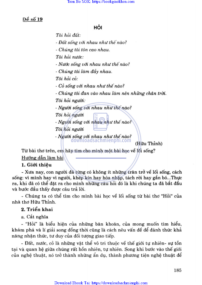 ĐỀ 19. TỪ BÀI THƠ HỎI – HỮU THỈNH, EM HÃY TRÌNH BÀY CHO MÌNH MỘT BÀI HỌC VỀ LỐI SỐNG