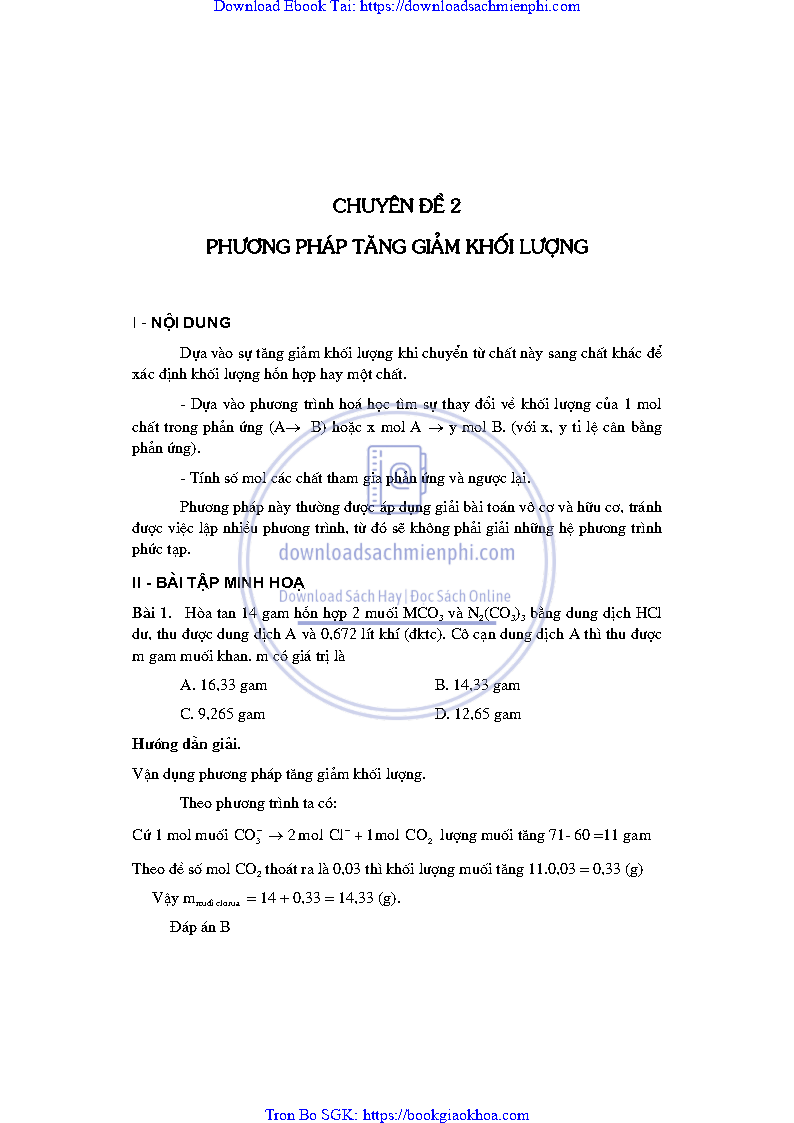 CHUYÊN ĐỀ 2. PHƯƠNG PHÁP TĂNG GIẢM KHỐI LƯỢNG