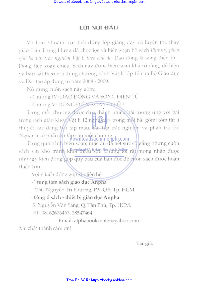 Kiến Thức Cơ Bản Và Hướng Dẫn Giải Bài Tập Vật Lý 12 – Mai Trọng Ý
