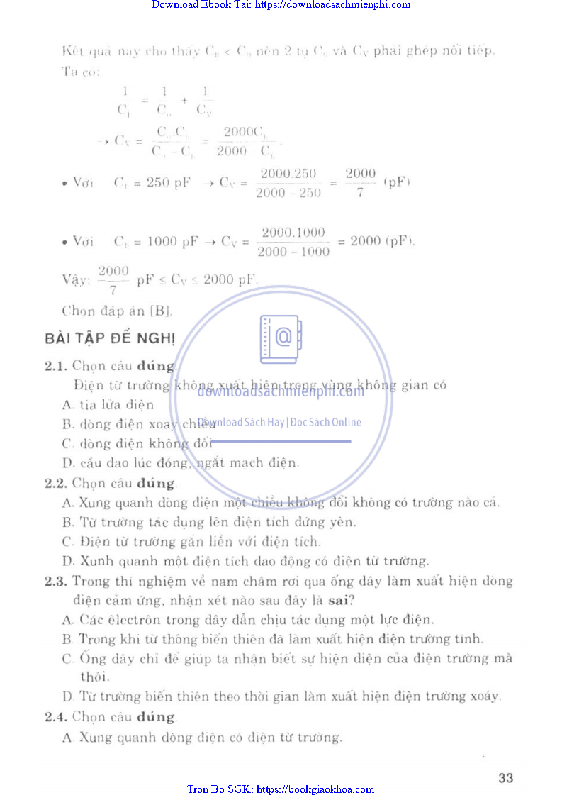 Phương Pháp Giải Bài Tập Trắc Nghiệm Vật Lý Theo Chủ Đề Tập 2 – Trần