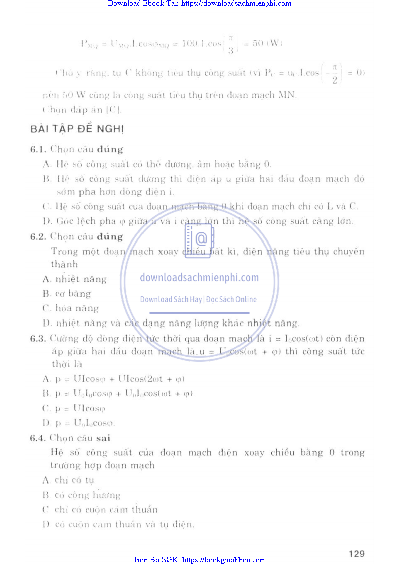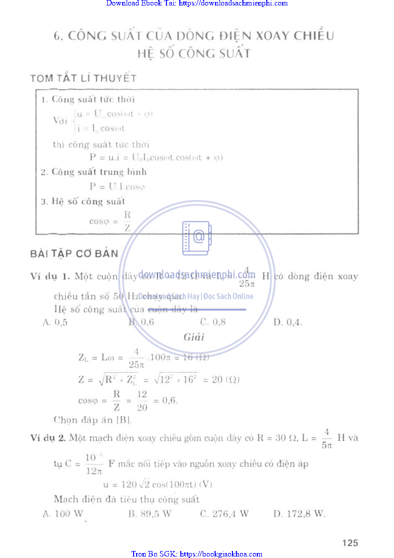 BÀI 6. CÔNG SUẤT CỦA DÒNG ĐIỆN XOAY CHIỀU HỆ SỐ CÔNG SUẤT