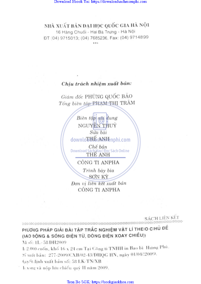 Phương Pháp Giải Bài Tập Trắc Nghiệm Vật Lý Theo Chủ Đề Tập 2 – Trần
