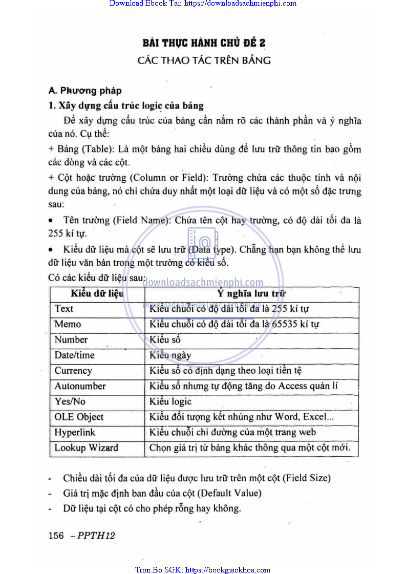 BÀI 2. CÁC THAO TÁC TRÊN BẢNG