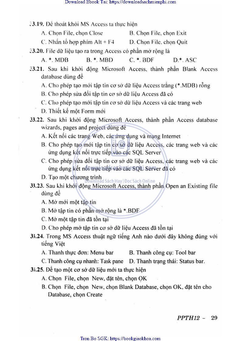 - ĐÁP ÁN VÀ HƯỚNG DẪN GIẢI CHƯƠNG 2. HỆ QUẢN TRỊ CƠ SỞ DỮ LIỆU MICROFT ACCESS